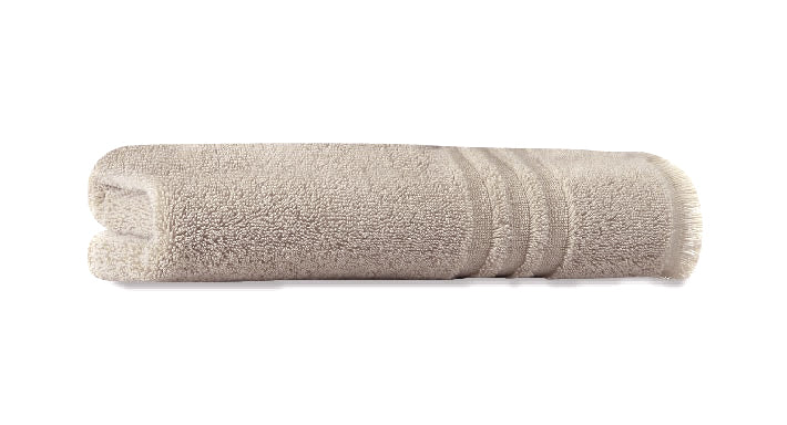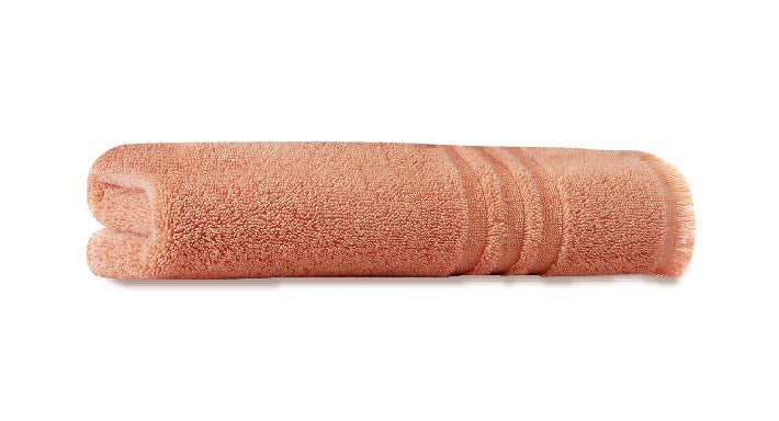 - Bath towel features a sewn in hanger loop