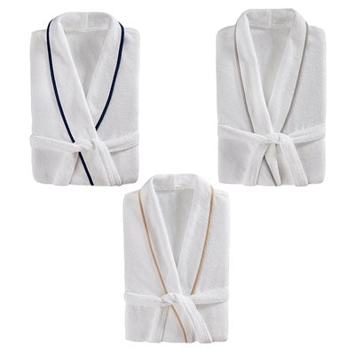 Made from the world's finest 100% Turkish zero twist cotton, these shawl plush bath robes with piping are fashionable and highly versatile. Featuring an unparalleled thickness and superb absorbency, these robes will wrap you in luxury, comfort and warmth. Our Turkish Plush Bathrobe Collection is truly a testament to quality and style. Each bath robe is finely crafted for lasting indulgence.