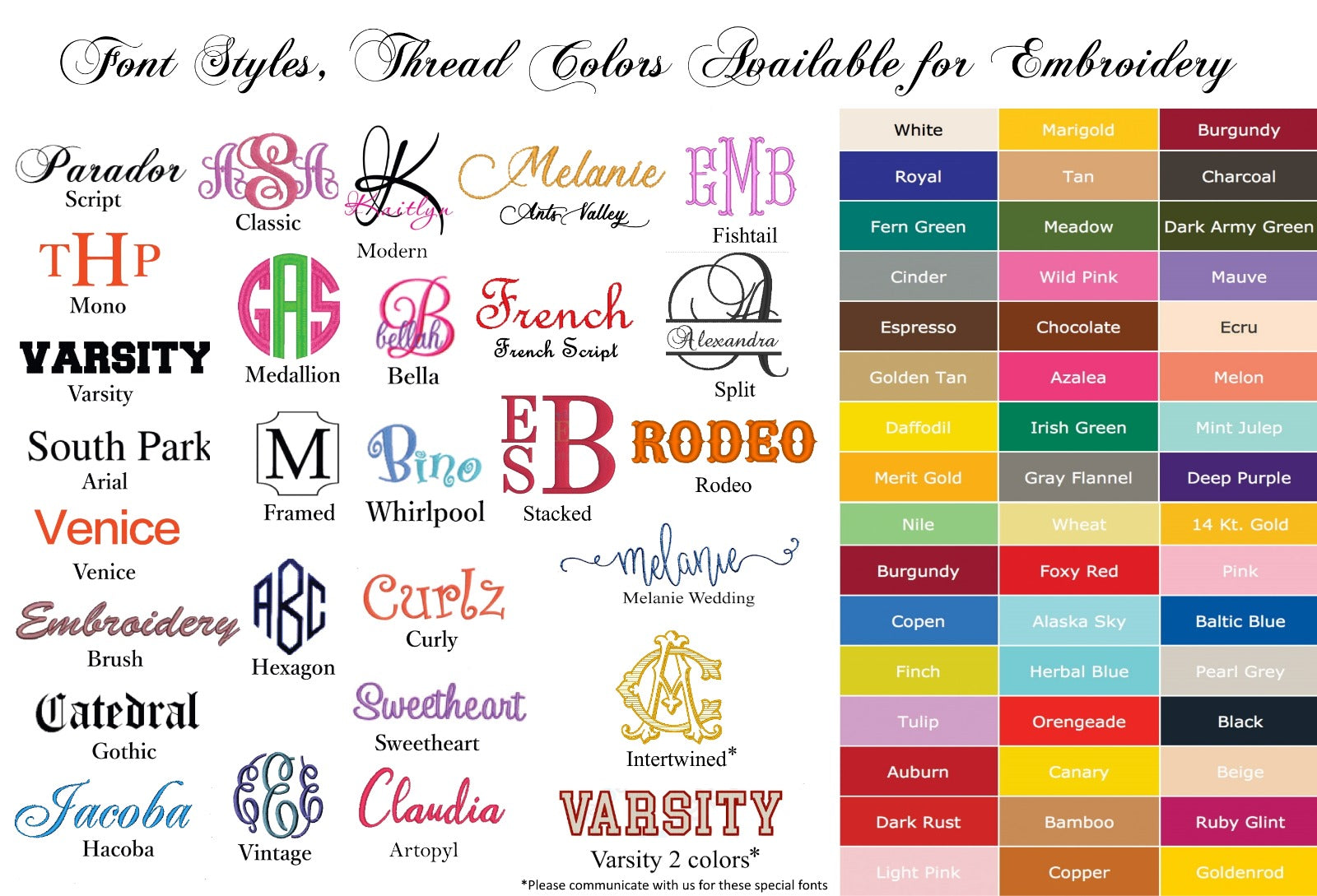 Font Color - Pick the best matching or contrast thread color.